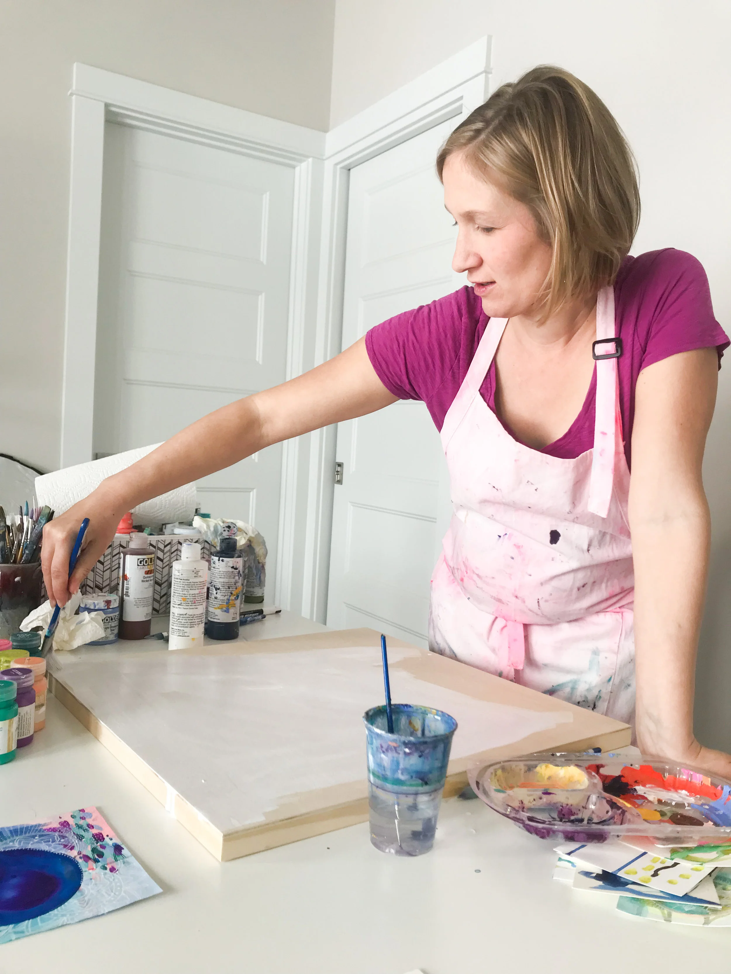 My paintings are influenced by my spiritual journey which has included explorations in Yoga, Tantra, Shamanism, Plant Medicine, Ayurveda, Astrology and Art Therapy. These practices help me to trust my intuition, find confidence in my body, and craft life habits that are self sustaining and nourishing.